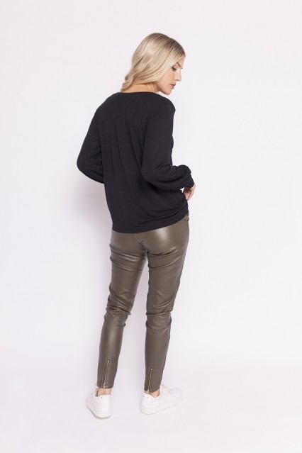 MÁS INFORMACION Realizado en Bengalina engomada. De formato clásico. Tiro alto, cintura con elástico embutido y cordón de ajuste. Bolsillos laterales. Detalle de cierres en ruedo espalda. Sumala a tus looks para darles una onda trendy y rockera.
