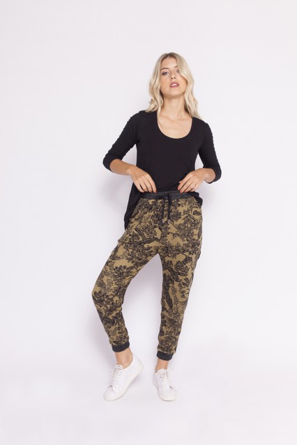 MÁS INFORMACION Realizado en Lanilla estampada combinada con cuero ecológico. Formato clásico. Cintura con elástico embutido y cordón ornamental. Bolsillos en laterales. Súper cómoda, esta prenda con detalles en eco cuero tanto en cintura como en puños, es ideal para un look casual urbano. Combinándola con prendas lisas y de colores neutros va a resaltar siendo la protagonista de tus outfits.