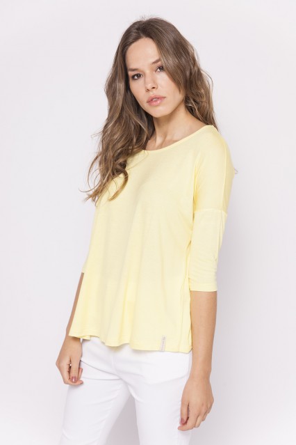 MÁS INFORMACION Realizado en Modal con Lycra . Formato cuadrado, calce over size suave. Largo a la cadera, escote redondo, hombro caído, manga 3/4 pegada. Podes encontrarla en una amplia y fresca paleta de colores, un básico con hermosa caída y mano que no puede faltarte a la hora de armar tus looks!