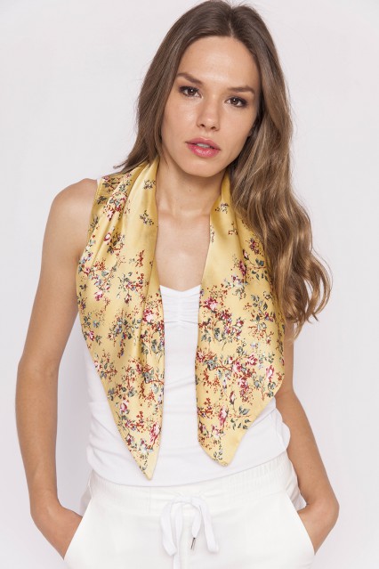 MÁS INFORMACION Realizado en Seda . Formato cuadrado de 0.70cm x0.70cm. Textura sedosa, súper suave al tacto. Motivo liberty, con pequeñas flores. Si queres darle un toque chic a tus looks, no dudes en sumarlo!