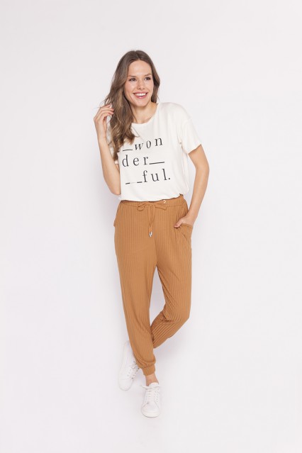 MÁS INFORMACION Realizado en Morley . De formato clásico, con elástico embutido en cintura. Puños en misma materialidad. Bolsillos diagonales laterales en delantero. Cinta de ajuste funcional a tono de la prenda, ojalillos y punteras metálicos. Súper cómoda y fresca, una prenda ideal para llevar esta temporada. Dispuesta en una paleta de colores clásicos que vas a poder combinar con todo!
