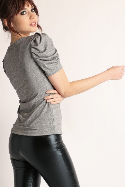 MÁS INFORMACION Realizado en Punto con lurex. Prenda de estilo ceñido al cuerpo. Mangas cortas con frunce que genera volumen estilo princesa. Escote redondo con collareta interna. Su materialidad aporta brillo ideal para un look de noche o glam de día.