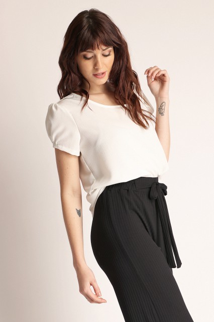 MÁS INFORMACION Realizado en Creppe . Escote redondo con collareta interna. Manga corta princesa con frunce pequeño en zócalo. Una prenda con estilo romántico en una paleta de colores pasteles que no te podes perder.