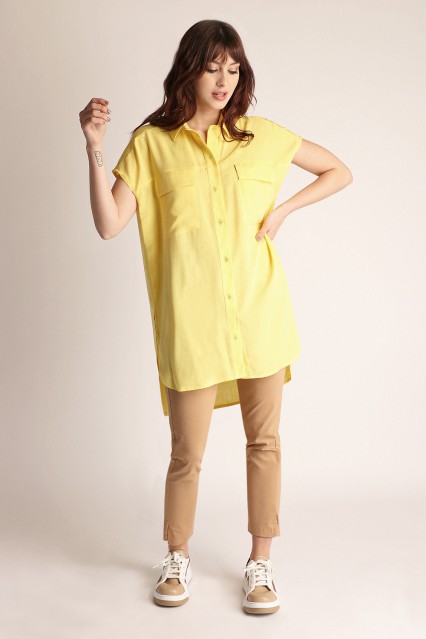 MÁS INFORMACION Realizado en Lino . Manga corta. Ruedo curvo irregular, con tajo lateral. Bolsillos plaqué en delantero. Botones de pasta al tono. Una prenda liviana, delicada y versátil para lucir esta temporada.