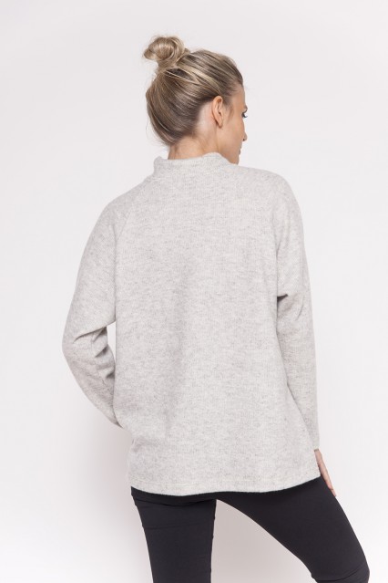 MÁS INFORMACION Realizado en Lanilla . Formato cuadrado. Manga ranglan larga pegada. Cuello media polera. Largo a la cadera. Ruedo recto irregular, más largo atrás. Tajos en laterales. De mano súper suave y bien abrigado. Podes encontrarlo en una hermosa paleta de colores pasteles. La tela y su corte le dan un calce y caída única. No te lo pierdas y sumalo a tu colección de este invierno!