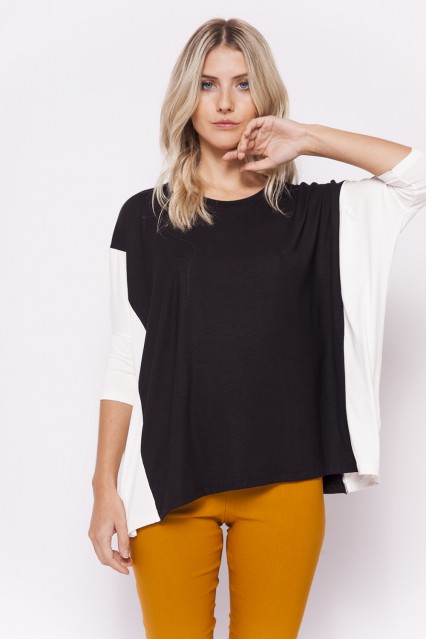 MÁS INFORMACION Realizado en Modal con Lycra . Formato cuadrado súper over size. Largo a la cadera. Ruedo recto. Manga 3/4 pegada. Cuello redondo. Recortes laterales a contra tono. Una prenda de excelente caída tanto por su corte como por su materialidad. Se adapta a diversas siluetas dándole un estilo casual a tus looks.